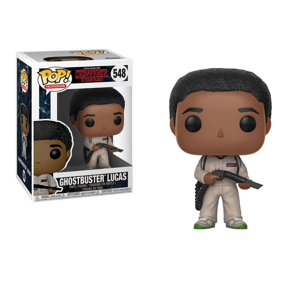 From stranger things, Lucas Ghostbusters, as a stylized pop vinyl from Funko! figure stands 3 3/4 inches and comes in a window display box. Check out the other stranger things figures from Funko! collect them all!