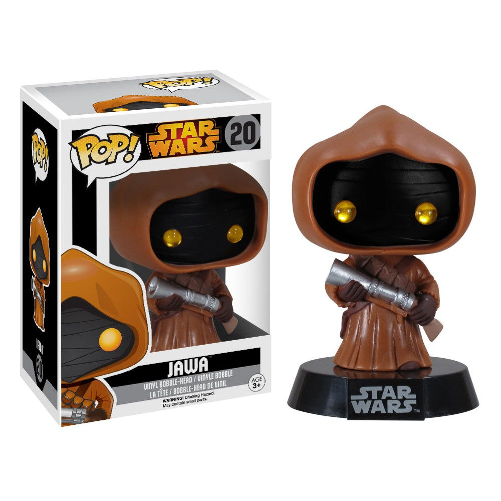 "Utini!" The rodent-like scavengers of Tatooine, seen in Star Wars: Episode IV - A New Hope, want to check your home for valuables! From Funko's vault, the Star Wars Jawa Pop! Vinyl Bobble Head measures approximately 3 3/4-inches tall and comes packaged in a window display box.
